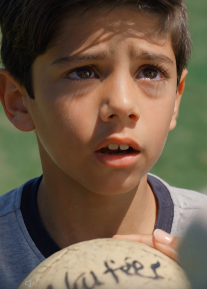 El niño miró la pelota… luego a la mujer.